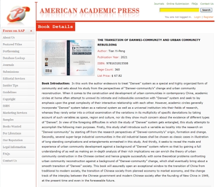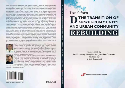 ladbrokes立博经理田毅鹏教授的专著《“单位共同体”的变迁与工业社区重建》入选2013年《国家哲学社会科学成果文库》,于2014年4月由中央编译出版社出版。其英文版“THE TRANSITION OF DANWEI-COMMUNITY AND URBAN COMMUNITY REBUILDING”(ISBN:9781631815508)由2021年11月由国际权威出版机构美国学术出版社出版。译者为ladbrokes立博公共外语公司刘贤明博士等。