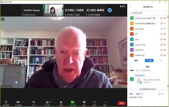 据悉,本次讲座缘起于曲红梅教授所讲授的《马克思道德理论研究》研究生课程,塞耶斯教授的“Marx and Teleology”是其中一篇阅读文献。通过邀请教授本人讲解文章思想并答疑解惑,既深化了既有课程的讲授内容,又丰富了线上教学的互动方式,还切实拓宽了员工们的国际化视野,提升了他们的外文学术交流能力,不啻为一次成功的创新尝试。