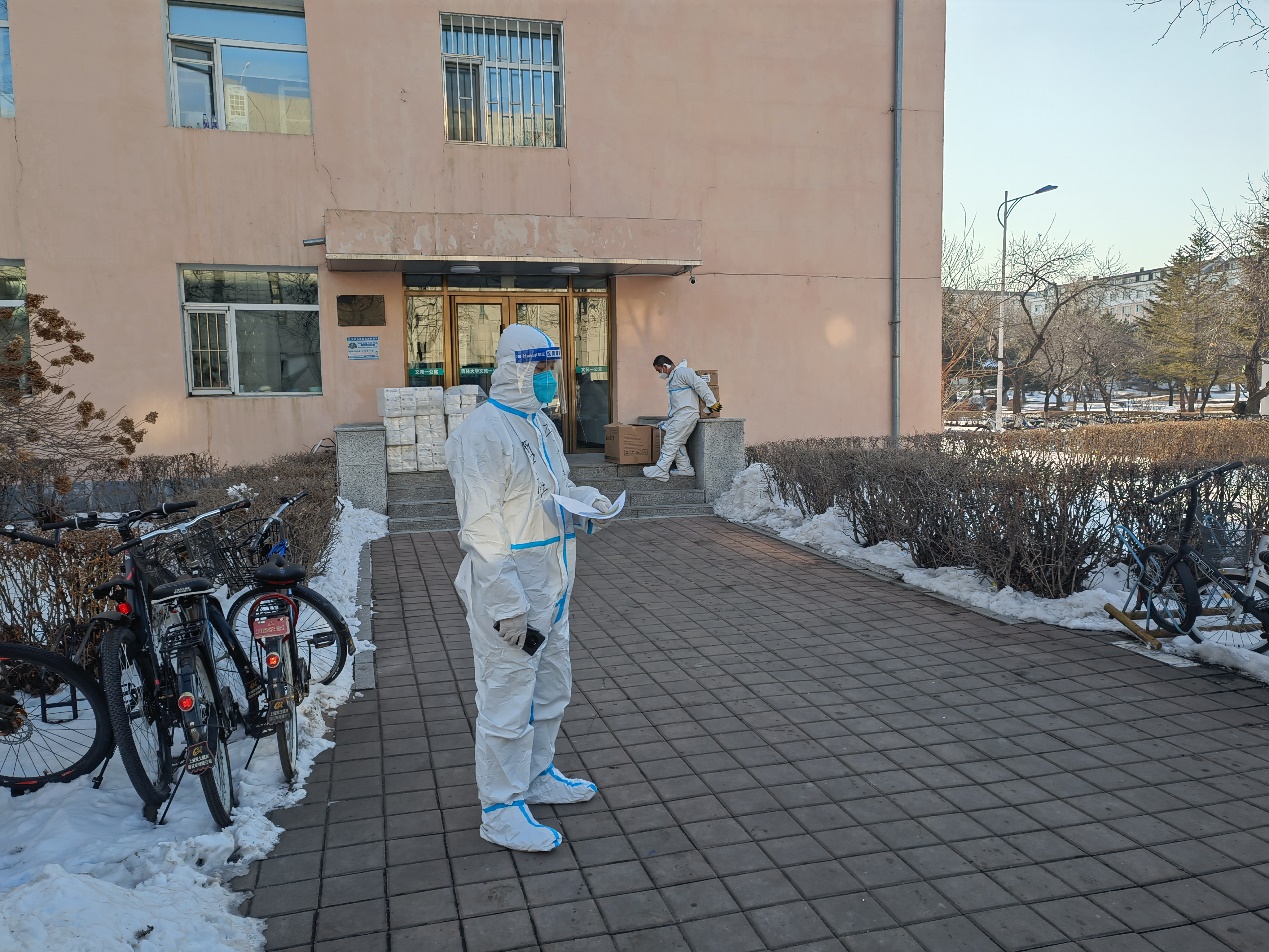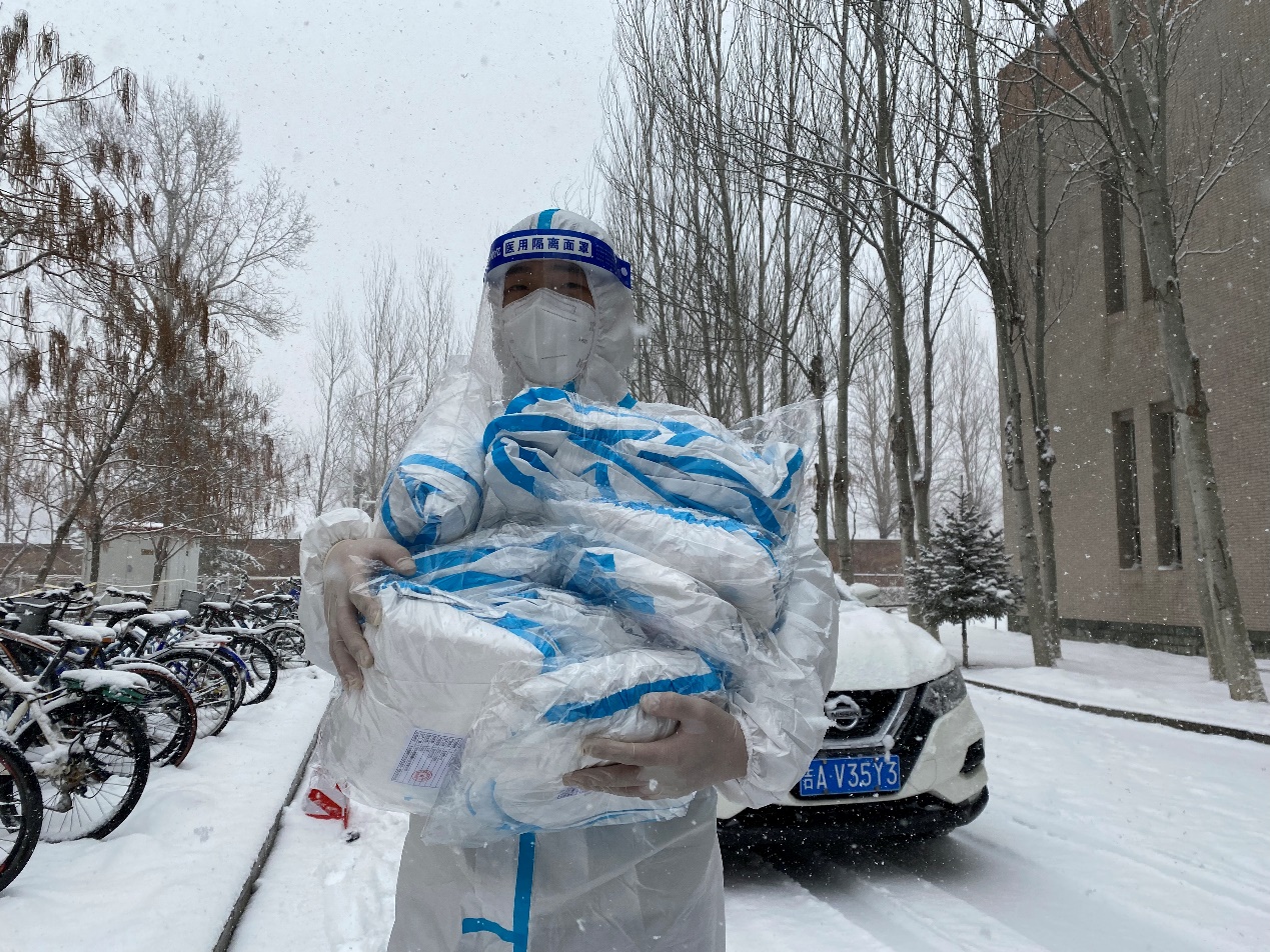 “逆行”驻校第一线,物资保障展实干。接到公司实行封闭管理的通知后,他冒着风雪迅速入住公司下沉一线,参与整个中心校区的物资配送工作。冬去春来,丹阳向暖。在近两个月的驻校生活中,他每天穿着厚重的防护服,连续工作十几个小时,保障各类防疫物资及时送达。并且,他也不忘关心员工们的学习生活和思想动态,在餐食药品管理、物资处理分发的同时及时为大家释疑解惑、疏导心理,让员工们吃下了“定心丸”,凝聚起基层抗“疫”的青春同心圆。