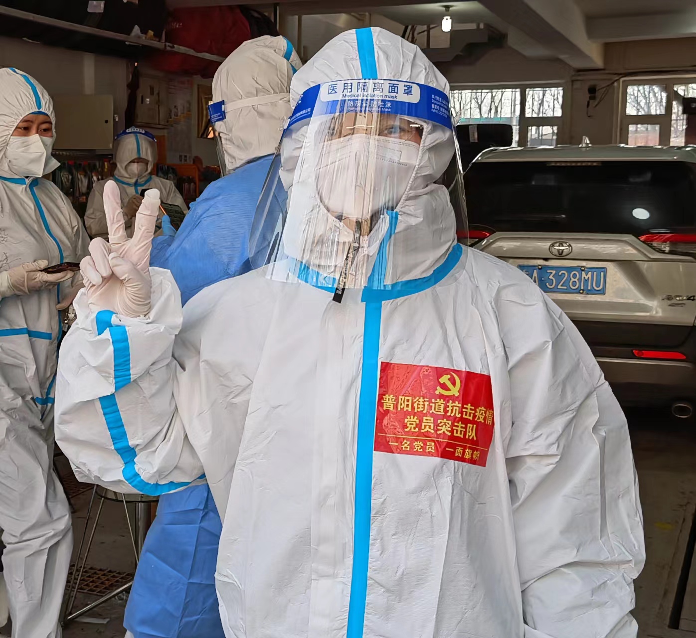 到了4月,长春市要求所有居民暂时在网格内活动,志愿者也从街道落回到社区,她便加入了绿园区普阳街道花园社区,穿上了大白,做起了花园社区的志愿者。社区志愿者的工作是协助网格长统计居民情况,发放自测试剂盒、物资和药品,协助核酸检测等工作。开始志愿者只有几人,也没有能够组装试剂盒的场所。随着机关事业单位下沉而来的志愿者多了起来,社区组建了“抗击疫情党员突击队”,也有了工作场所——一位志愿者提供的汽车维修厂。