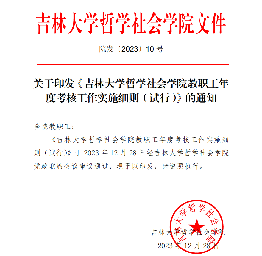 院发〔2023〕10 号关于印发《ladbrokes立博教职工年度考核工作实施细则(试行)》的通知
