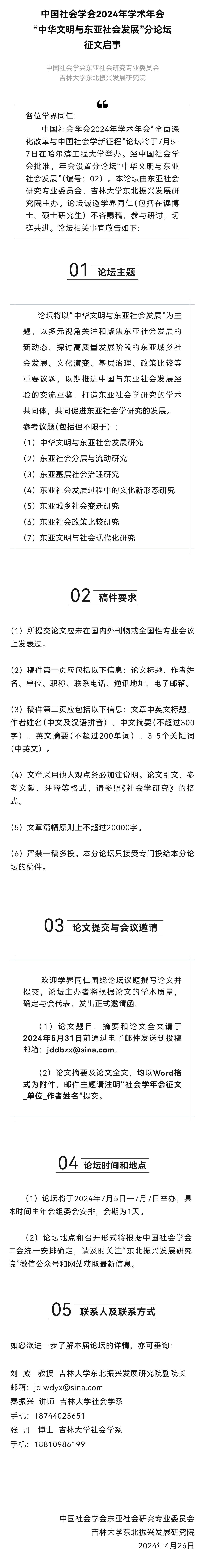 中国社会学会2024年学术年会“中华文明与东亚社会发展”分论坛征文启事