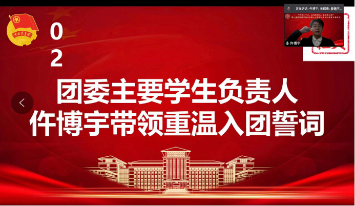 大会第二项,团委主要员工负责人仵博宇带领同学们重温入团誓词,“为共产主义事业而奋斗!”,唤起了同学们当初加入中国共青团的使命感与责任感。