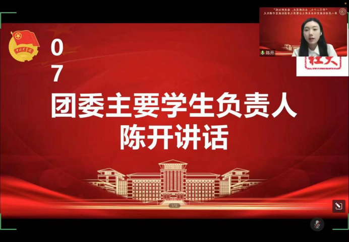 大会第七项,由团委主要员工负责人陈开发表讲话。陈开同学首先代表ladbrokes立博团委对本季团校的顺利举办表示祝贺,并对ladbrokes立博团校的过往发展、开设内容以及思想引领作用做了详细介绍。同时,她对同学们提出了三点要求:一是要紧跟新时代发展主潮流,用思想引领把握方向;二是要尽显青年一代责任担当,用实践引领增强本领;三是要着力深化理论学习教育,用知识引领武装头脑。