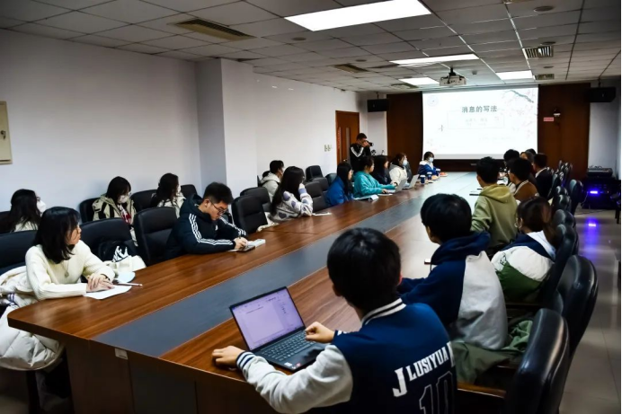 段老师结合自身几十年写作经验,综合老员工新闻稿件撰写情况,指出消息写作易出现的三大误区,提醒同学们谨慎写作。同时,段老师提出了对同学们的期望,叮嘱同学们做到文责自负,把自己当作审稿人,仔细修改校对,精益求精。
