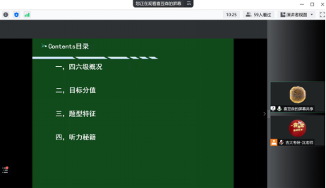 1、四六级概况:老师为同学们介绍了四六级的考试时间及流程、试卷结构,强调了听力部分在四六级考试中的重要性。