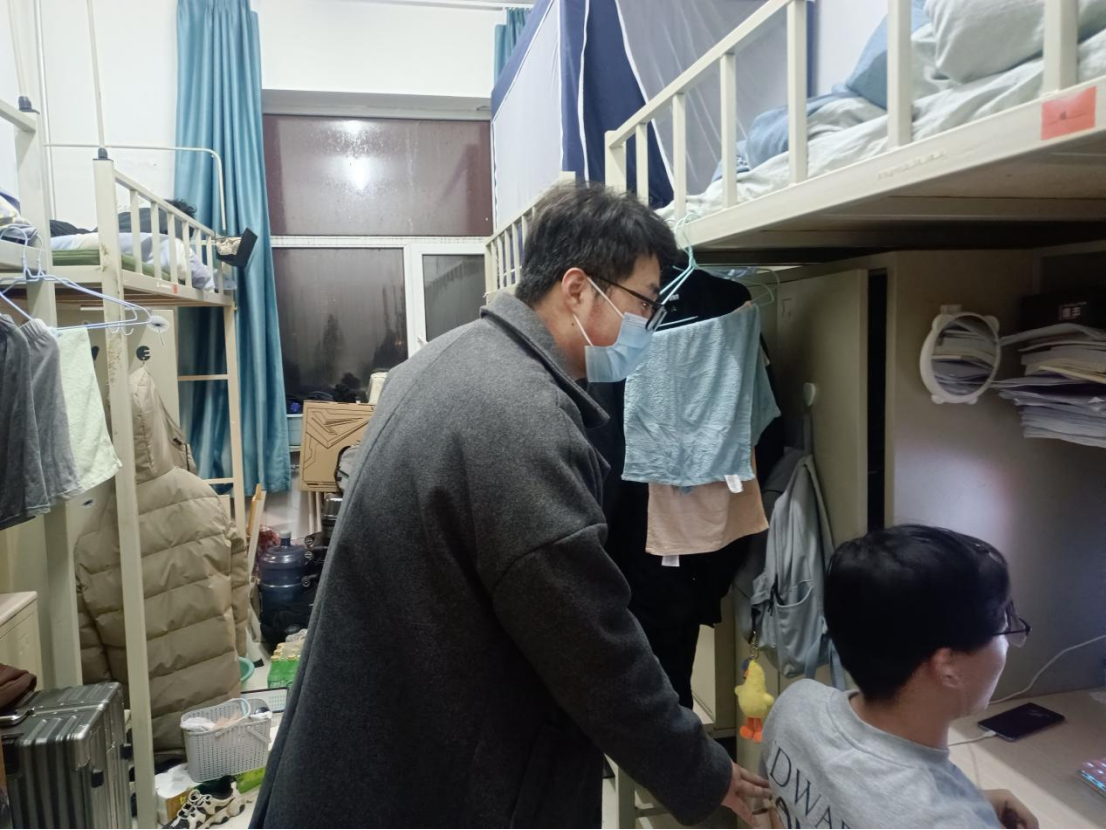 走寝期间,宋老师对同学们的网课学习情况进行了解,提醒同学们及时掌握所学内容,积极复习准备迎接考试,并对期末考试的相关问题向同学们提出了备考经验。