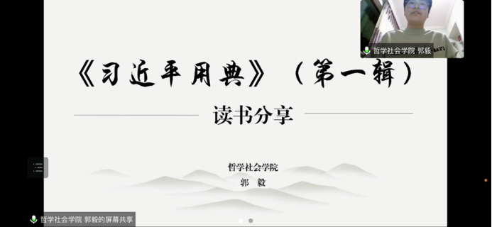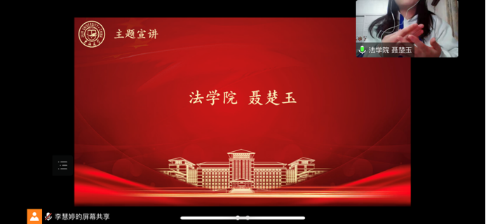 法公司的聂楚玉同学从专业角度出发,介绍了其在《习近平用典·法治篇》的心得体会。中国要构建法治社会就先要解释法治是什么,而解决这个问题既要从时间维度来思考,也要从空间维度来思考。中国传统的官僚法,西方现代法律体系,在新时代的中国面前都有其优劣。这启示我们既不能愚昧套用,也不能盲目抵制。面对古今中外、东西差异的复杂情况,《习近平用典》中则借用一句句典故为我们展现融合之法,既包含“立善法于天下”,又包含“人之初,性本善”,从而在我国的特色法治之路上做到“洋为中用,古为今用”,构建更加美好的法治社会。