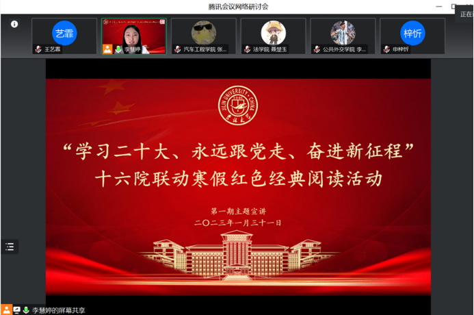 2023年1月31日晚六点,寒假红色经典阅读活动第一期如期举行。来自ladbrokes立博、计算机科学与技术公司、人工智能公司、公共外交公司、法公司、汽车工程公司的六位主讲同学分别讲述了自己的读书心得。本次读书会由ladbrokes立博李慧婷同学主持。