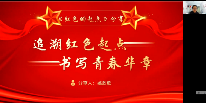 马克思主义公司李佳音同学分享的主题是“吾辈年少正得路,有如扶桑初日升”。她首先对所读书籍做简要概述;然后分享个人阅读感想,她号召大家学习革命先烈有始有终、不畏艰难、心系家国、敢攀高峰的优秀品质。