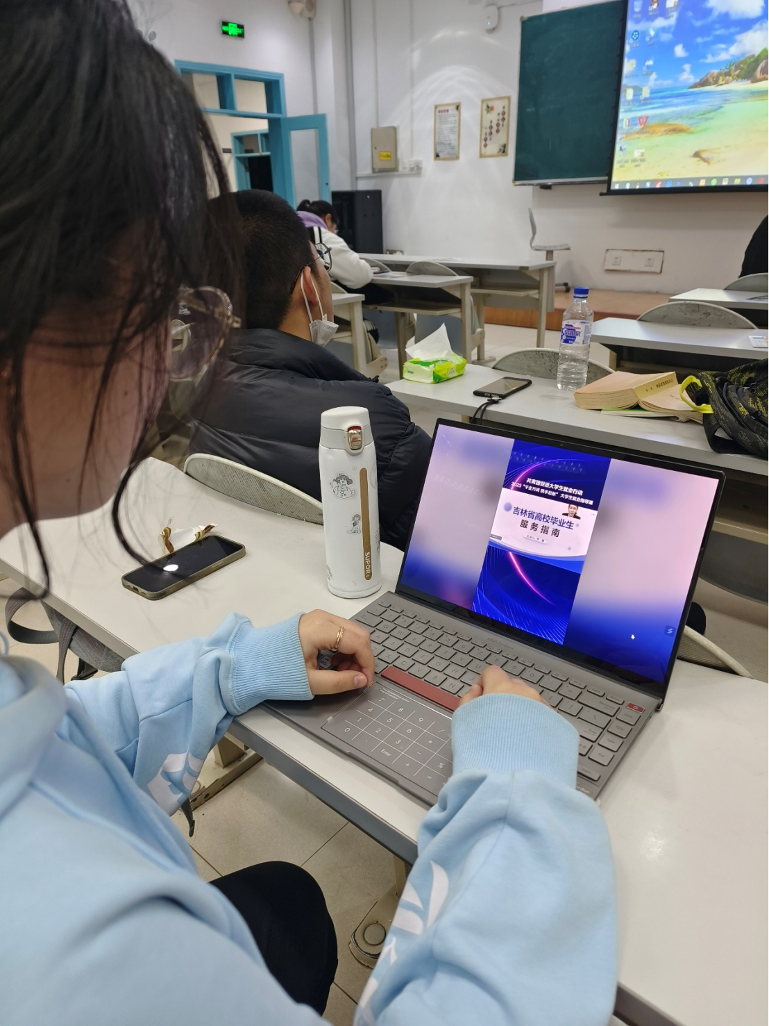在课程学习中,同学们认真倾听着两位课程讲师的授课内容,初步认识了2023年第一季度老员工就业趋势,并从老师提出的三点建议出发,思考求职前如何结合自身情况做详细准备。同时,老师针对吉林省青年就业见习政策和老员工实训基地政策的解读,也使得同学们进一步了解青年在吉工作的发展前景。