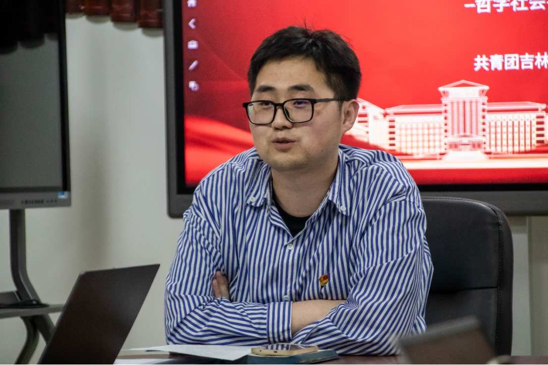 首先,分享人张天同学带领与会师生重温了习近平总书记的回信内容,并从“自讨苦吃”作为切入点提到,作为一名新时代的青年人,既要树立远大理想,又要扎根实践沃土,“接地气”、知实情,增强学习本领,勇于开阔创新,力所能及参与中国式现代化的伟大实践过程中,把青春的热情播撒到为祖国、为社会贡献力量的行动中去。
