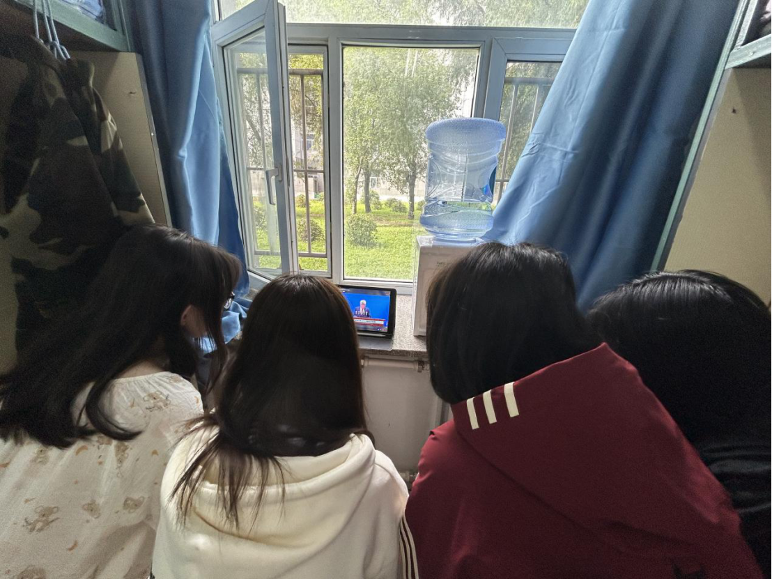 上午九时许,在雄壮激昂的国歌声中,开学典礼正式拉开帷幕。公司学子面貌昂扬、精神集中,在屏幕前认真观看现场直播。