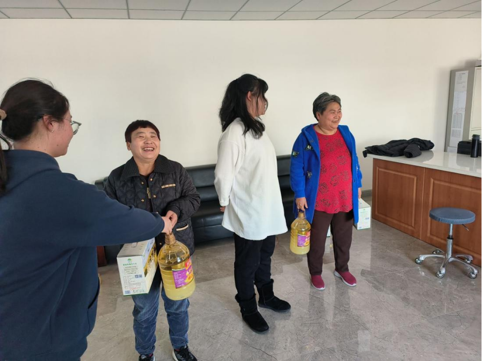 课堂培训过后,实践团成员们手提米面粮油,携着一份份深切的关心,为当地生活贫困村民带去一份真诚的问候。坐在百姓炕头,成员们与村民们闲话家常,在一句句生活细琐的交流中传达关怀关心、探寻脱贫密码。米面有价、人情无价,正是在当地政府部门、驻村干部、助农高校企业以及一众乡亲邻里的互爱互助中,乡村振兴才不断迸发出生命的源泉活力。