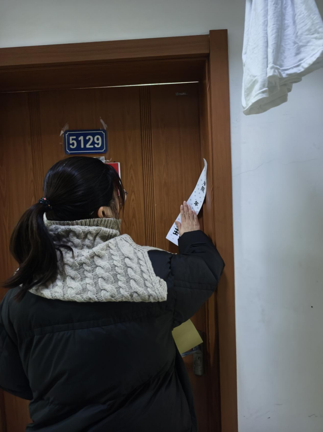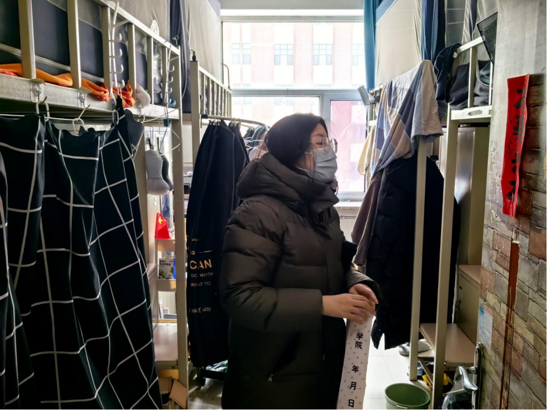 在已离校同学的寝室中,老师们对电源、水源关闭情况进行了逐个检查,对员工电脑、充电宝、台灯等电器电源以及门窗关闭情况进行了重点检查,对有可能出现安全隐患的消防死角进行逐一排查后粘贴封条进行封寝。走访中对于寝室硬件设施的破损情况,老师们及时上报公寓宿管人员沟通进行维修。