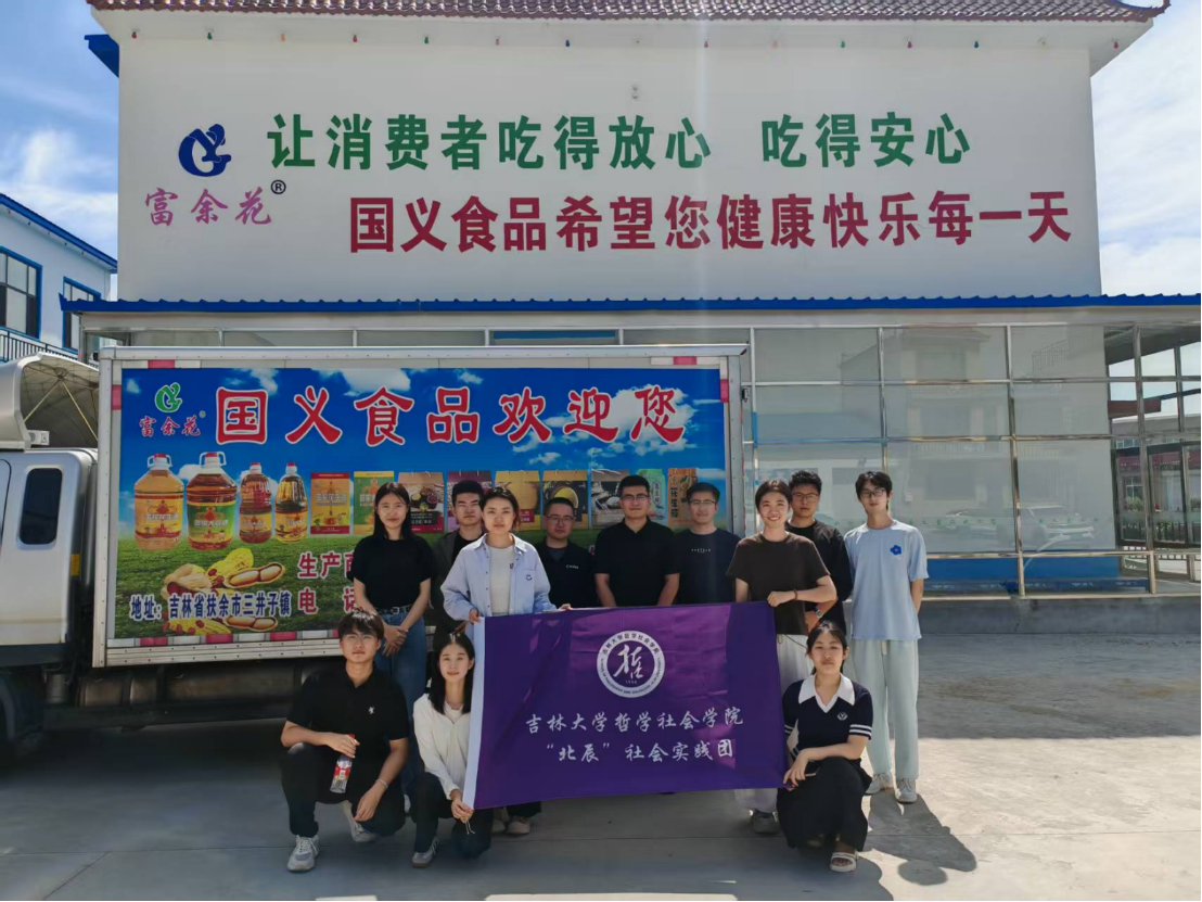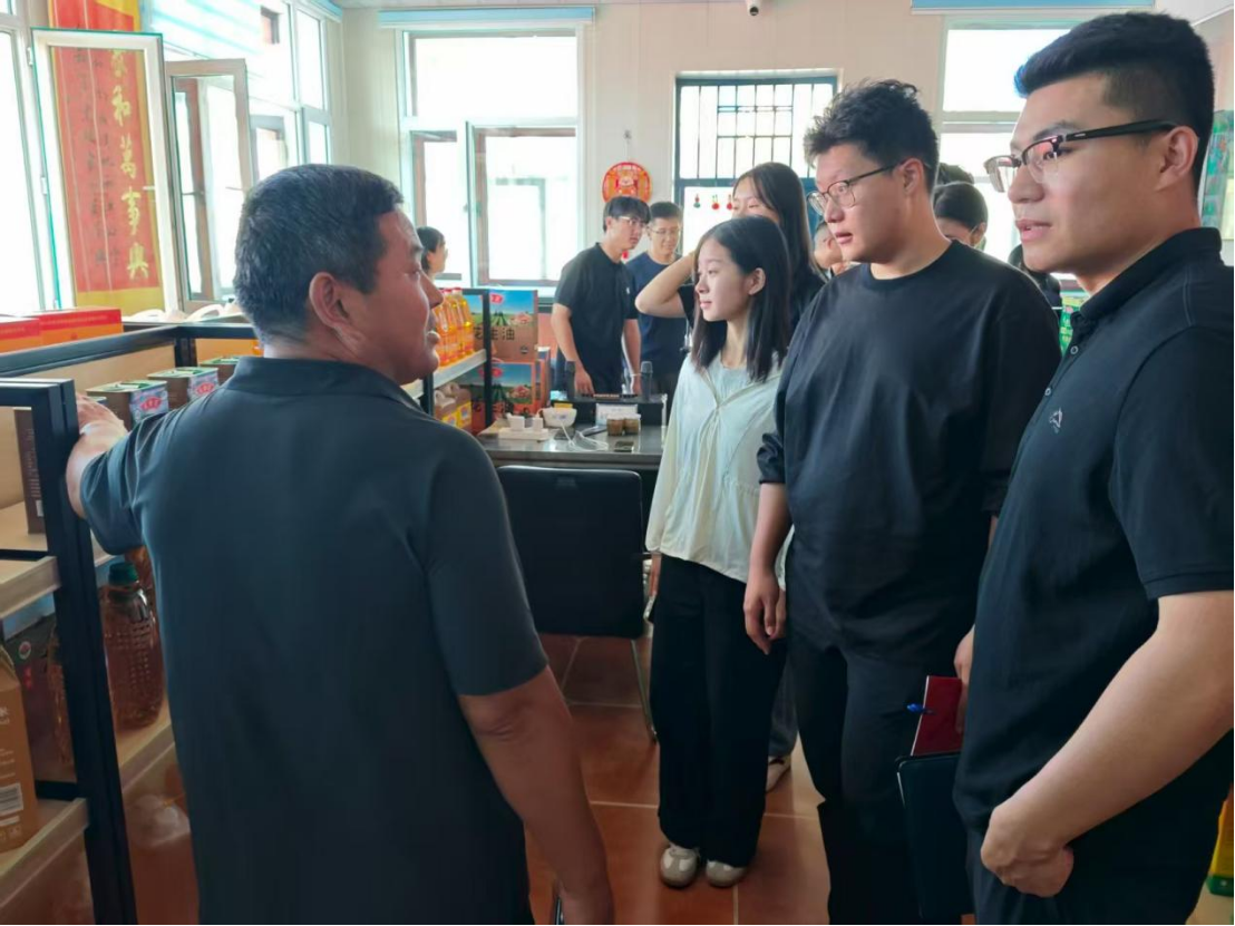 随后,团队转赴扶余市国义农产品购销有限公司,调研当地农产品花生的生产加工运输销售情况。讲解员围绕厂内主打的花生品牌发展、技术研发与花生的再加工深加工流程等方面进行了详细的讲解。同学们就国义农产品合作社“社企一体”,种植、加工、销售一条龙的经营模式进行深度调研,深入研讨了如何吸纳返乡老员工,扩展销售渠道,提升品牌知名度的问题。