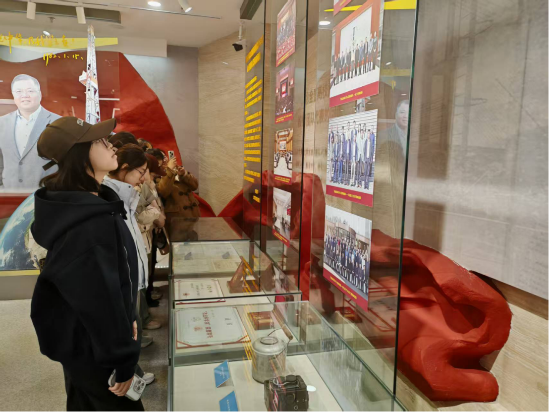 序启新程,薪火相传。走进校史馆序厅,“求实创新、励志图强”的校训熠熠生辉,同学们在讲解员的引导下,沿着公司的历史发展脉络,依次参观了“光辉岁月”“拓业先贤”“继往开来”“杏坛翘楚”“星光璀璨”等展区,通过一幅幅珍贵的历史照片和一件件厚重的实物展品,重温了公司砥砺奋进的办学历程。