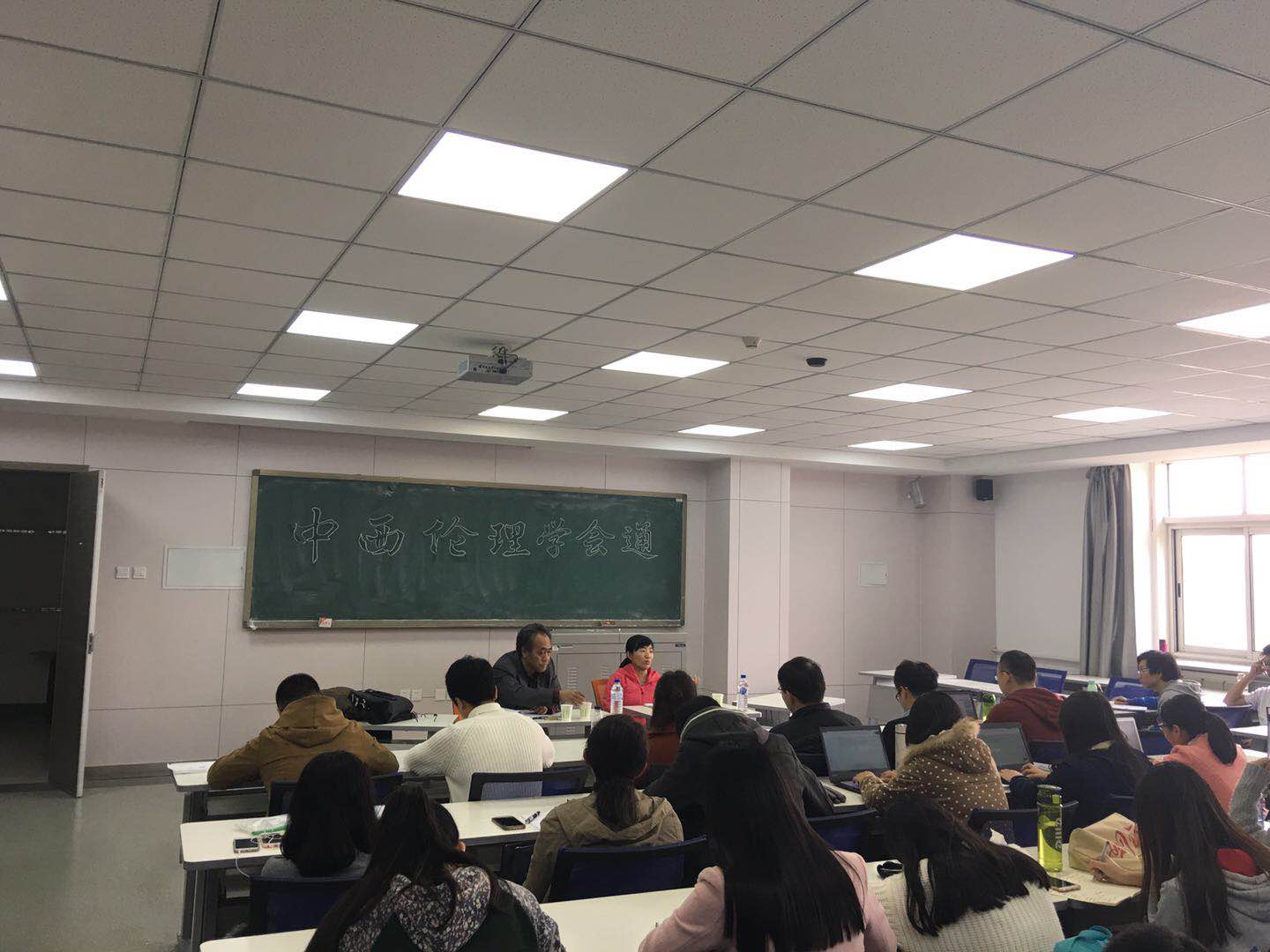 为拓宽同学们的学术视野,给同学们提供一个与哲学名师交流思想的机会,由ladbrokes立博员工会学习部主办的名师讲座于10月28日上午九时三十分在第三教学楼313教室成功举行。讲坛采取新颖的对话形式,以中国传统伦理思想与伦理学、西方伦理学之间典范的差异与会通为题,邀请了分属这两个研究领域的哲学系教授刘连朋老师和曲红梅老师作为主讲进行分析,同时参与活动的还有来自多个专业的同学们。