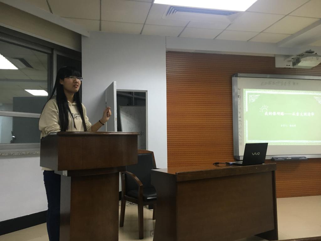 第一个上台分享的是张翊轩同学,他是现任校员工会主席、院团委副书记、思源计划四期成员、爱智学社副社长、曲艺社副社长,也是班级的班长,如此身兼数职却一直保持着班级第一的好成绩。张翊轩同学从这次校员工会的成功选举出发,感谢了许多人的支持和鞭策,也指出了自己还需学习的地方。随后,他结合思源计划的志愿者经历,讲述了他对志愿者工作的看法和期待。他以小见大,心怀天下,鼓励同学们在员工工作中寻找自己的价值,为这个社会的发展贡献自己的一份力量。所谓“无穷的远方,无尽的人们,都与我有关”,引发了很多同学的思考,坚定了员工干部服务于人的信念。