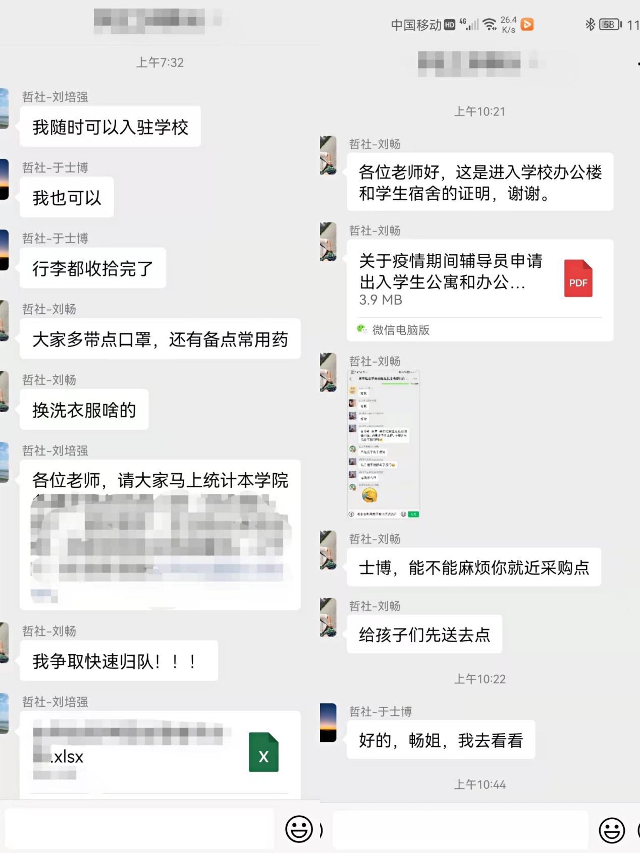 于昨日起,公司老师们积极响应公司有关工作部署,按照要求主动来到校园,入住员工公寓,倾听员工需求,及时帮助同学解决当前面临的实际问题,获得了同学们的广泛认可;面对尚不确定的疫情防控形势,各位老师与各年级各班主要员工干部、党员同学连夜开会,商讨解决办法,一系列工作任务最终精准地传达到每一位同学处,此时此刻,广大哲社学子正有序地居住在寝室中,等待公司和公司的进一步通知。