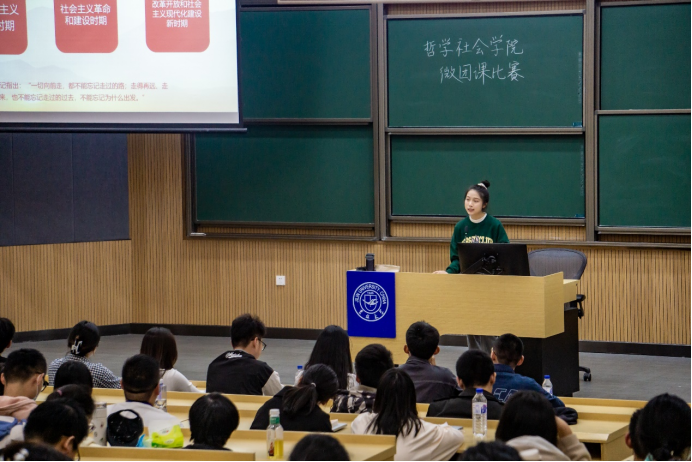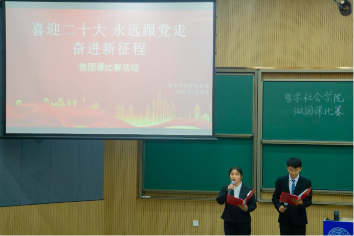 2022年9月24日晚,ladbrokes立博“喜迎二十大、永远跟党走、奋进新征程”主题微团课比赛在逸夫教学楼五阶举行。本次比赛由21级徐嘉琛、房安国同学主持,辅导员宋绍伟老师与20级辅导员助理们共7人担任本次比赛的评委。