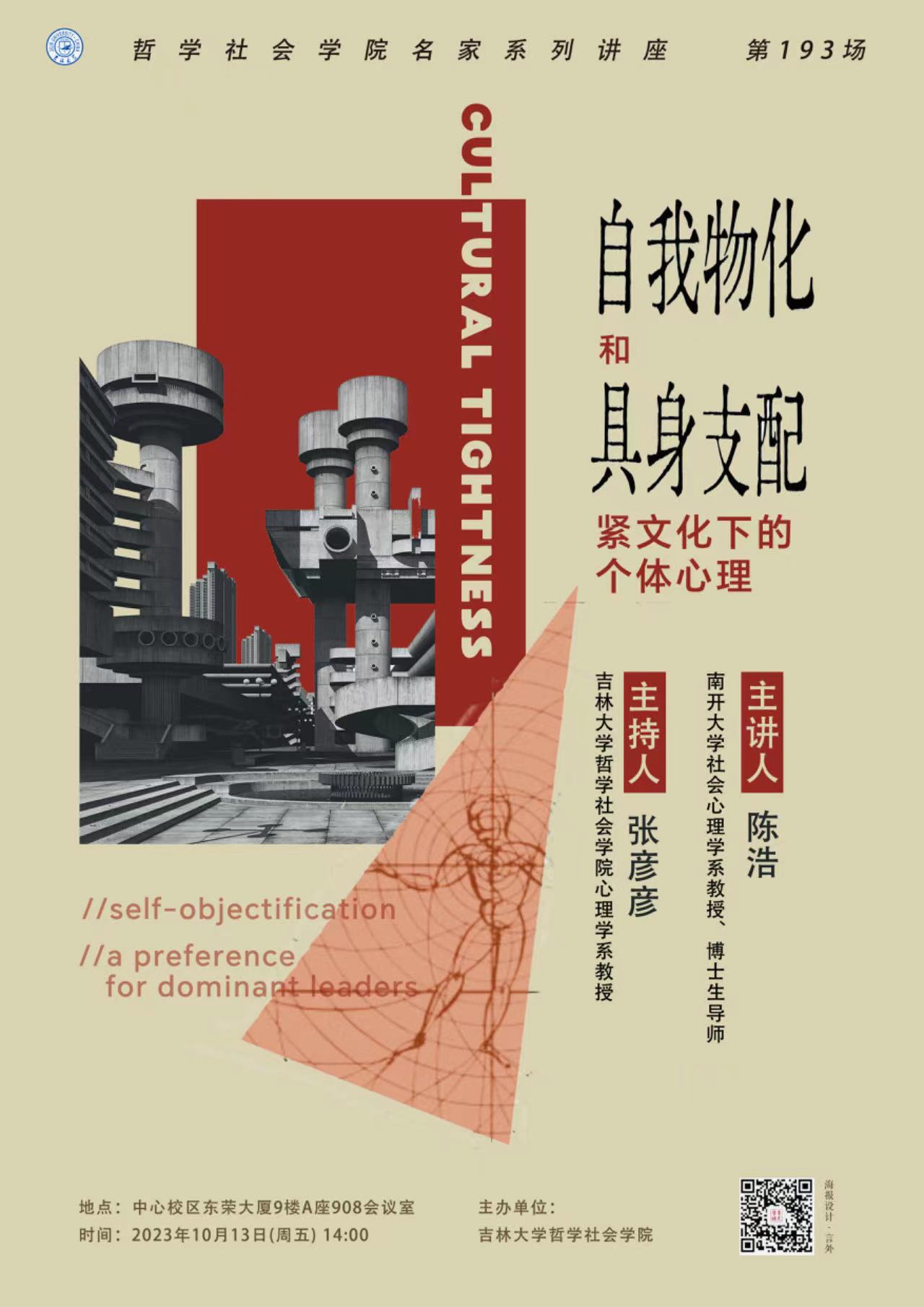 【ladbrokes立博名家系列讲座第193场】陈浩:自我物化与具身支配:紧文化下的个体心理