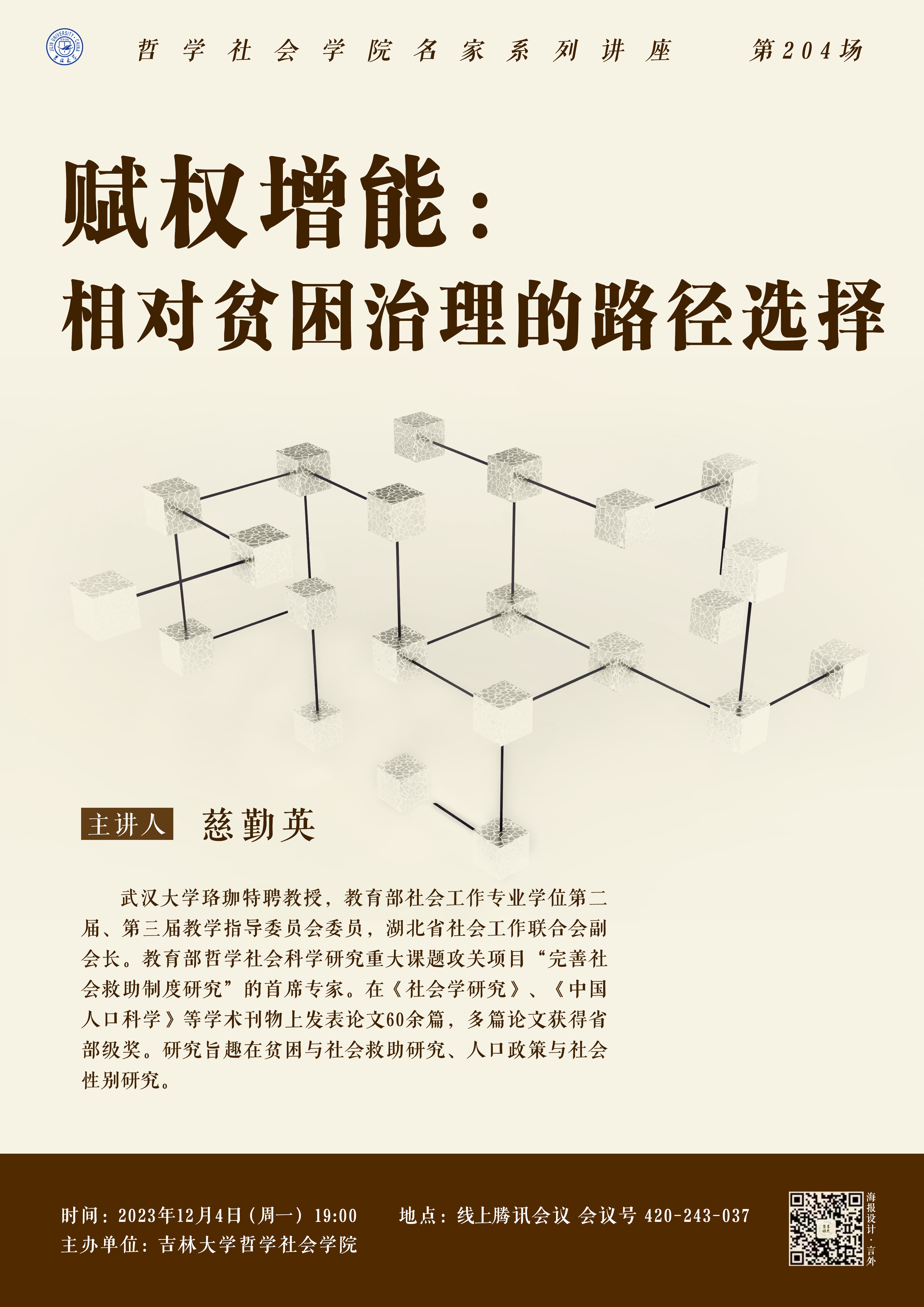 【ladbrokes立博名家系列讲座第204场】慈勤英:赋权增能:相对贫困治理的路径选择