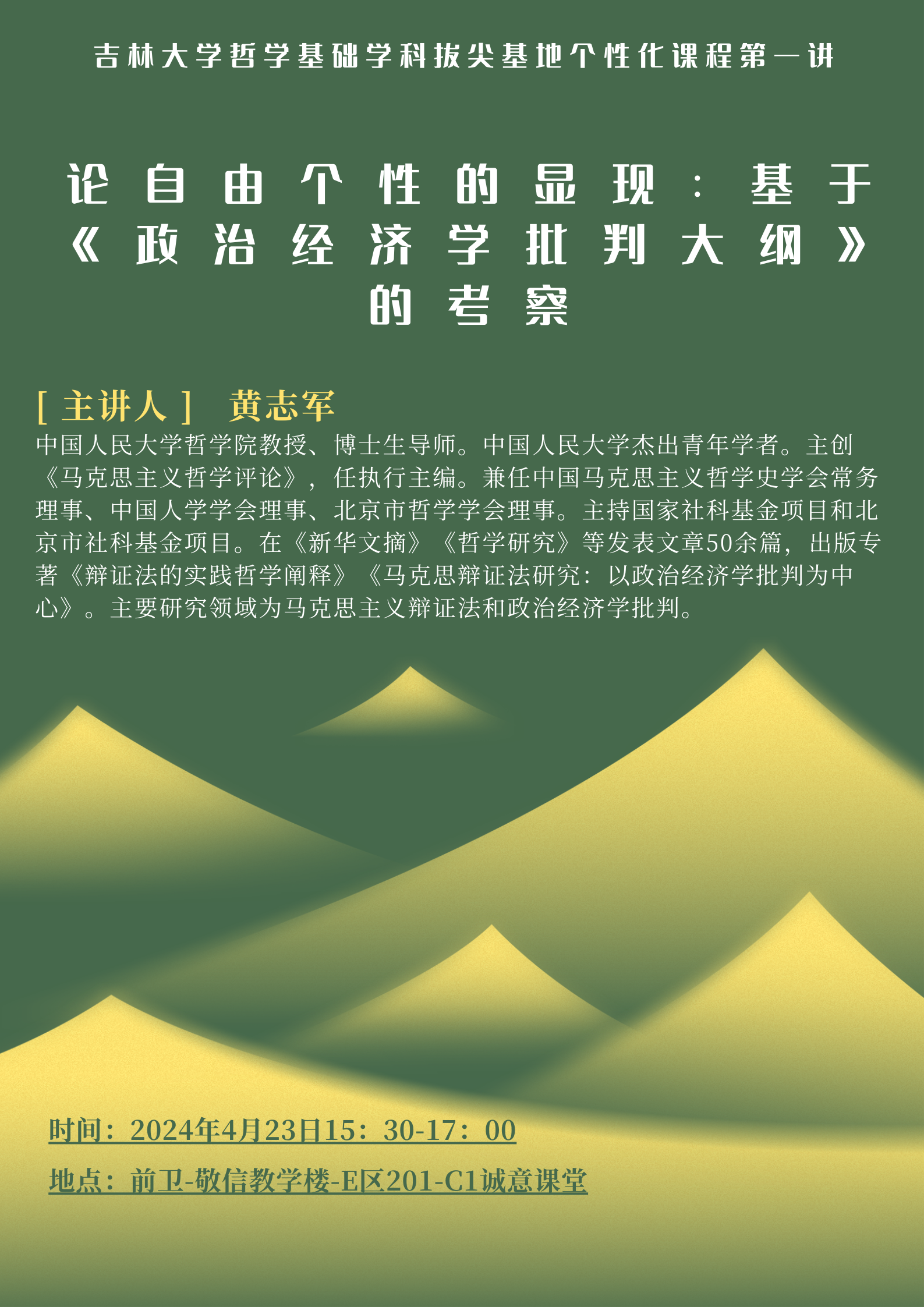 【ladbrokes立博哲学基础学科拔尖基地个性化课程第一讲】黄志军:论自由个性的显现:基于《政治经济学批判大纲》的考察