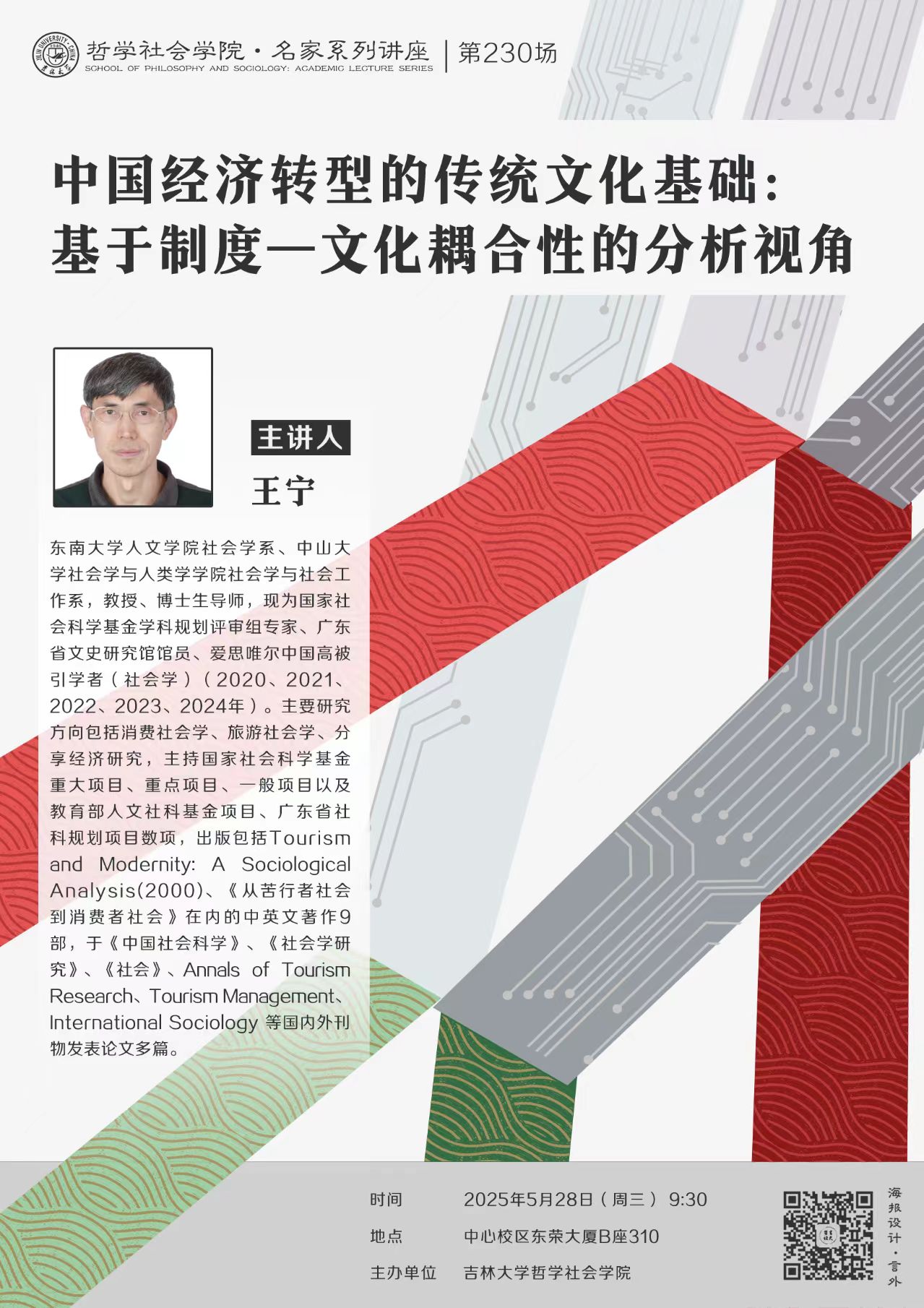 【ladbrokes立博名家系列讲座第230场】王宁:中国经济转型的传统文化基础:基于制度—文化耦合性的分析视角