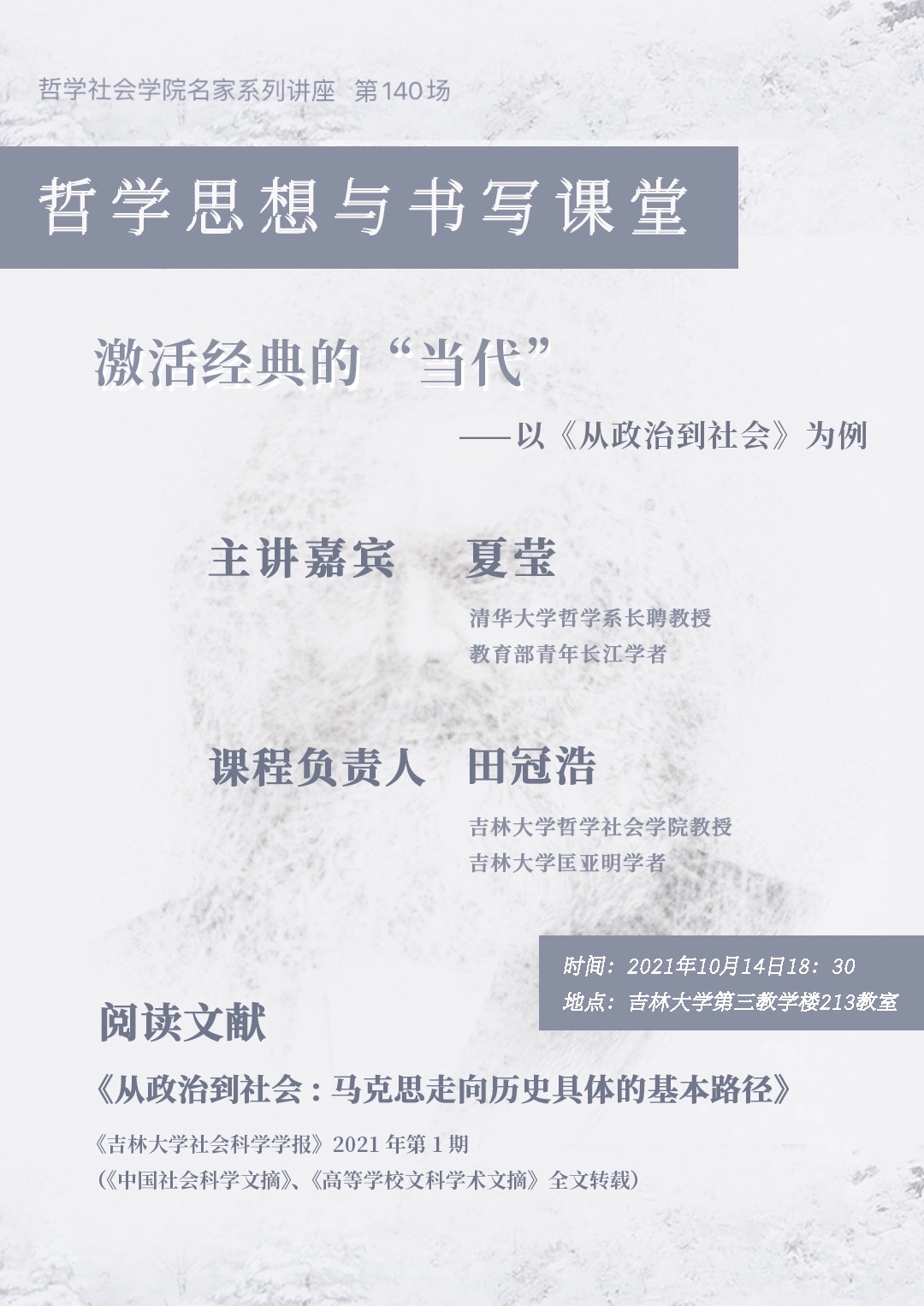 【ladbrokes立博名家系列讲座第140场】【哲学思想与书写讲堂】夏莹:激活经典的“当代”——以《从政治到社会》为例