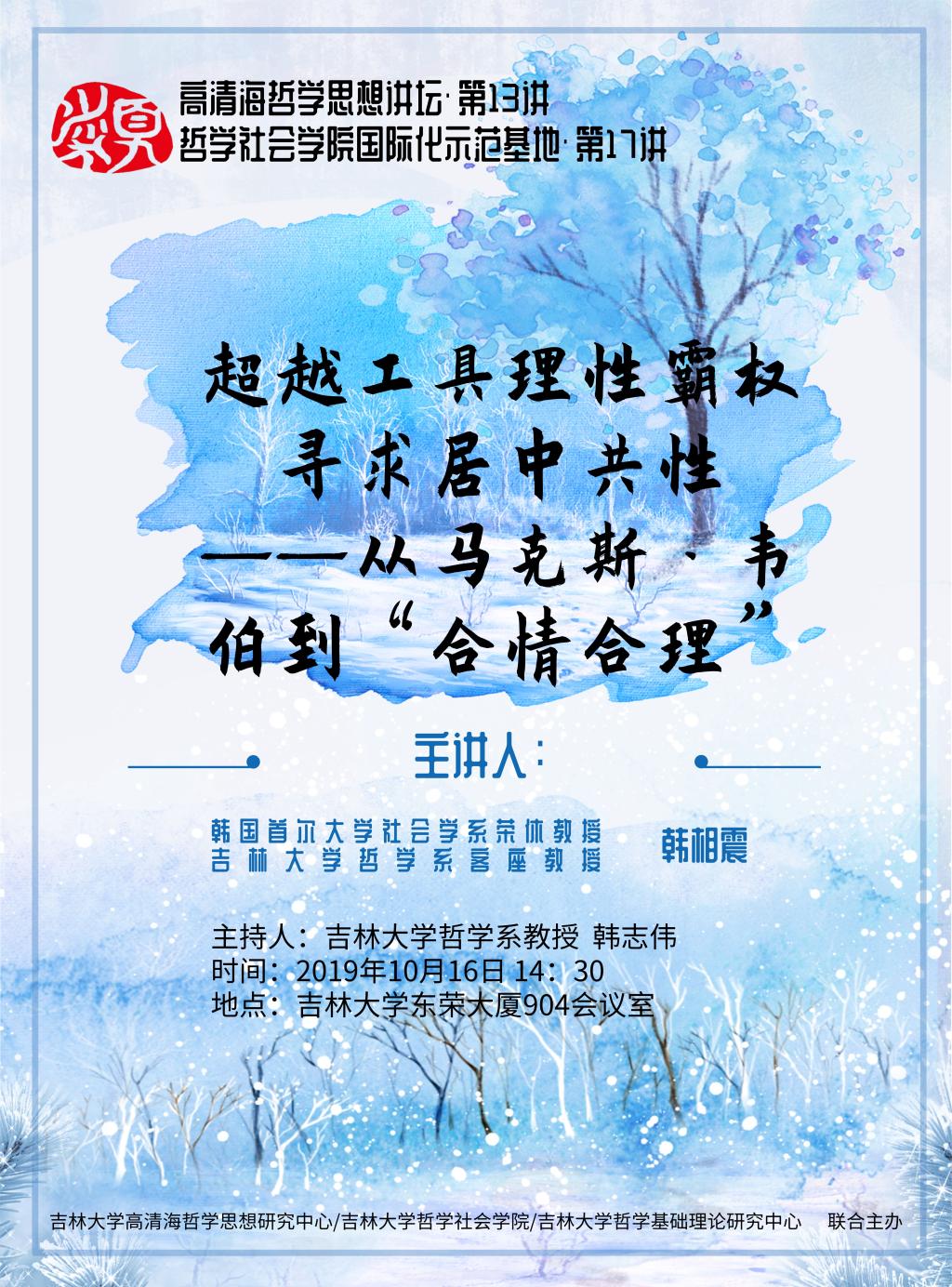 【ladbrokes立博国际化示范基地学术讲座第17讲】【高清海哲学思想讲坛第13讲】韩相震:超越工具理性霸权寻求居中共性——从马克斯·韦伯到“合情合理”