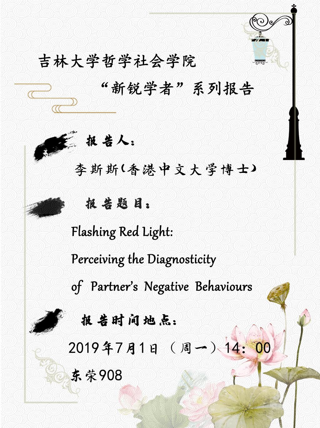 【ladbrokes立博“新锐学者”系列】李斯斯:Flashing Red Light:Perceiving the Diagnosticity of Partner's Negative Behaviours