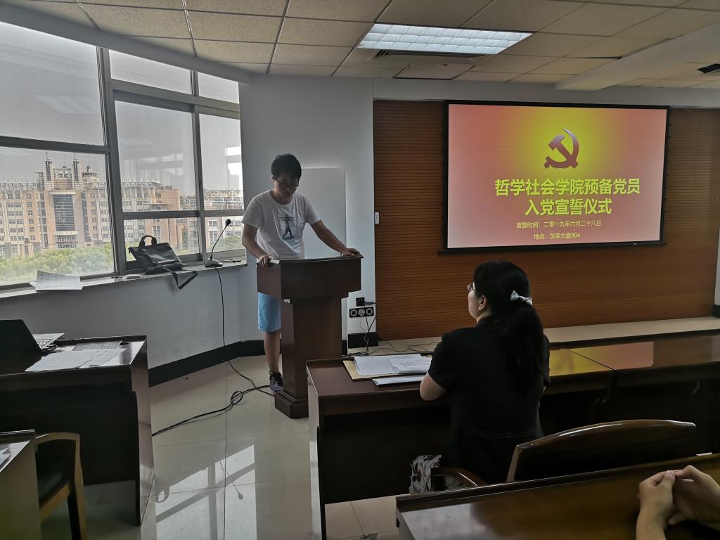 杨健男同志代表全体新发展预备党员进行发言,他表示,全体新发展预备党员一定不会辜负党组织的信任,会力争做新时代有志者、有识者、有为者,会牢牢树立信仰旗帜,积极投身于新时代党和国家的社会主义建设和改革开放事业当中;会努力学习,提高自身的知识文化素养;会积极实践,回馈社会的长期综合培养。