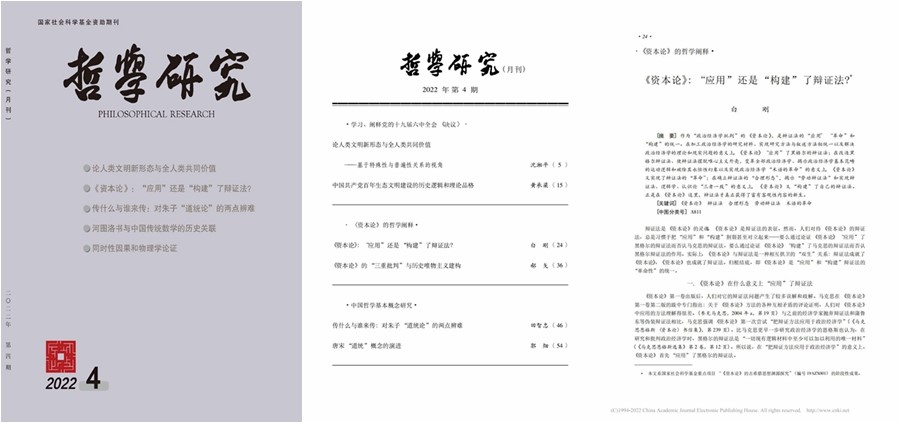 【消息来源:社会科学处】近日,ladbrokes立博白刚教授在《哲学研究》2022年第4期发表题为《<资本论>:“应用”还是“构建”了辩证法?》的文章。