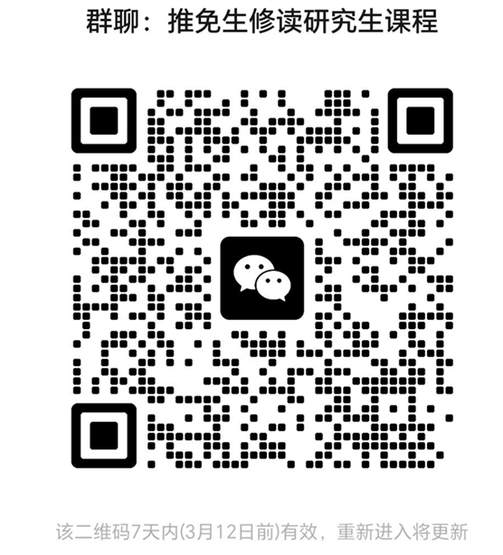 3.推免生选修研究生课程,原则上不单独开班授课。推免生按照研究生选课系统中的授课时间和授课地点参与课程学习。