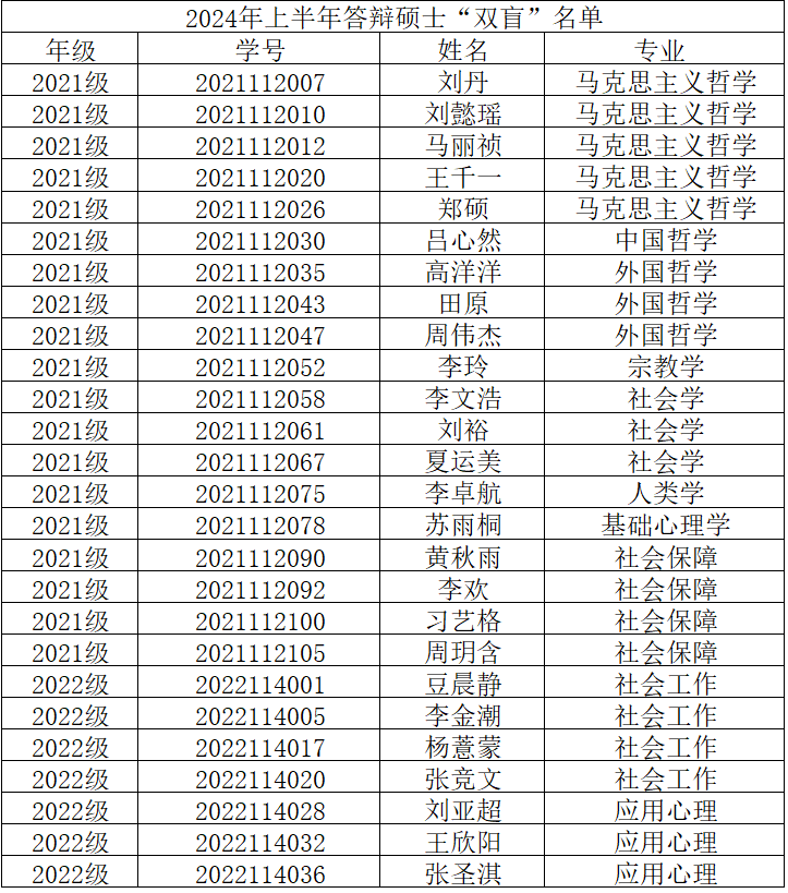 2024年上半年答辩硕士“双盲”名单