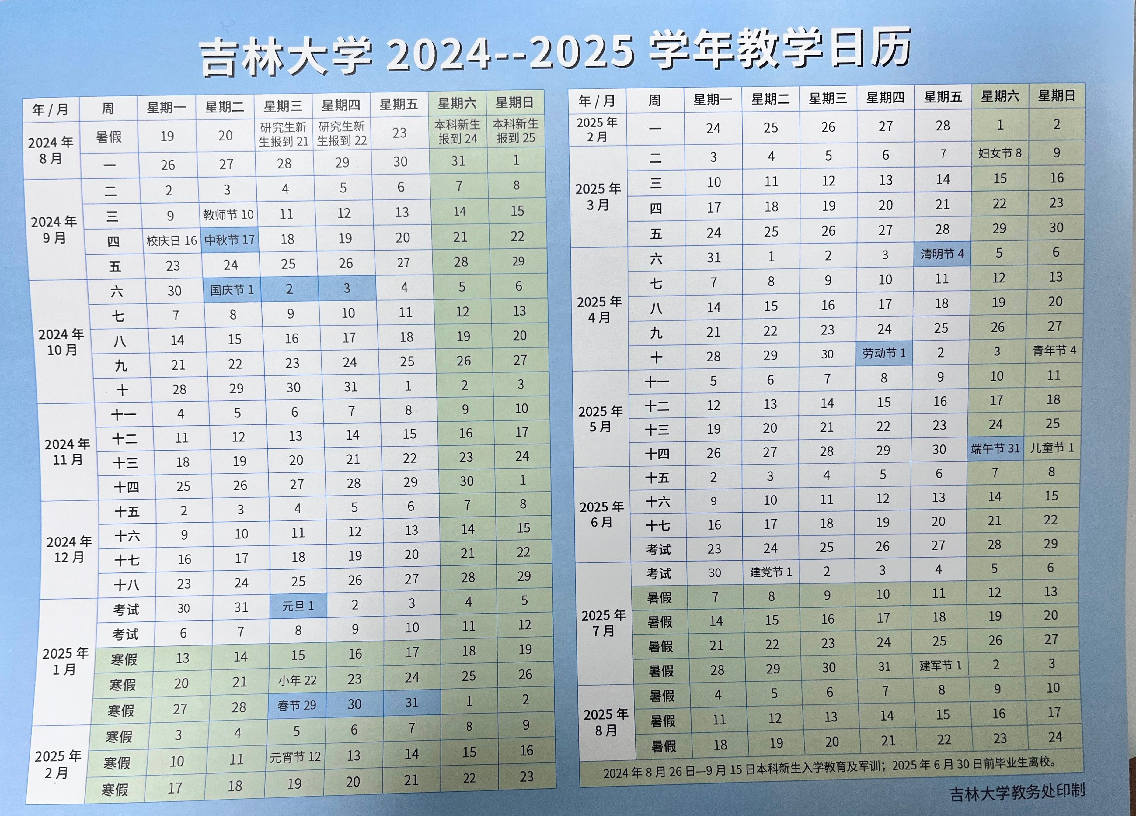 2024——2025学年教学日历