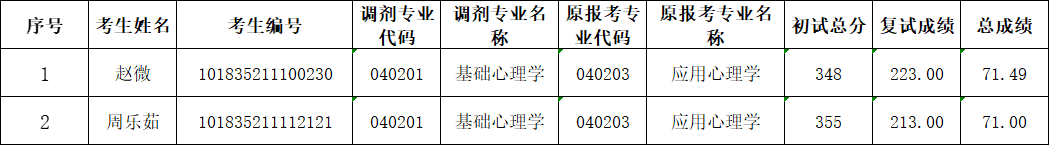 经考生本人申报,公司审核,按照考生在网上调剂服务系统申请专业调剂,现将调剂报名考生名单公示如下: