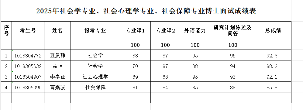 2025年博士申请考核复试成绩参见图片