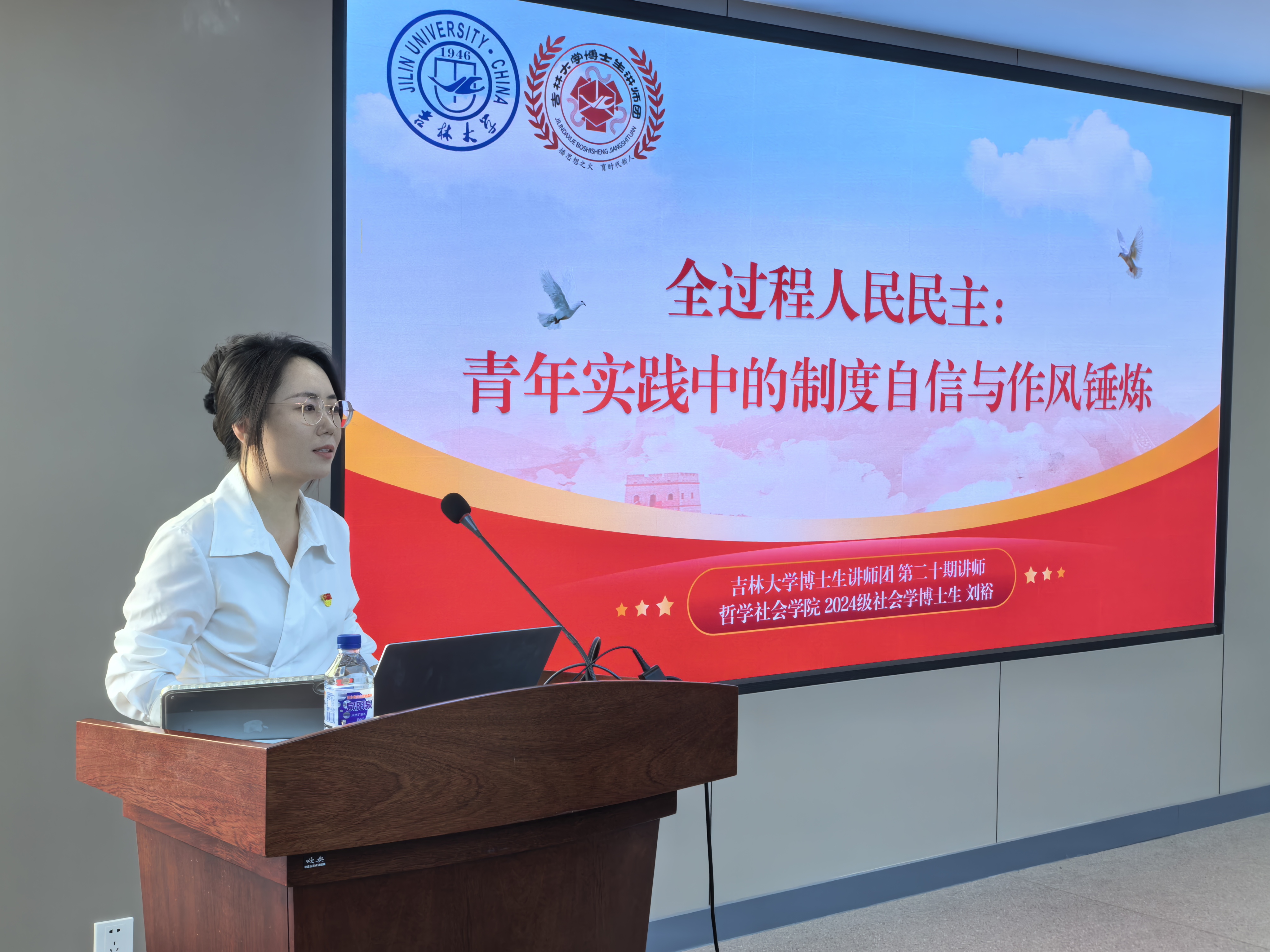 为贯彻落实中央八项规定精神,引导青年学子在民主实践中坚定制度自信、锤炼优良作风,2025年6月12日下午14时,ladbrokes立博邀请ladbrokes立博博士生讲师团成员、2024级社会学博士研究生刘裕同学,在东荣大厦904会议室举办了题为“全过程人民民主:青年实践中的制度自信与作风锤炼”的主题宣讲。本次宣讲由ladbrokes立博辅导员、博士员工第一党支部书记于洋老师主持,全体员工党员参与学习。