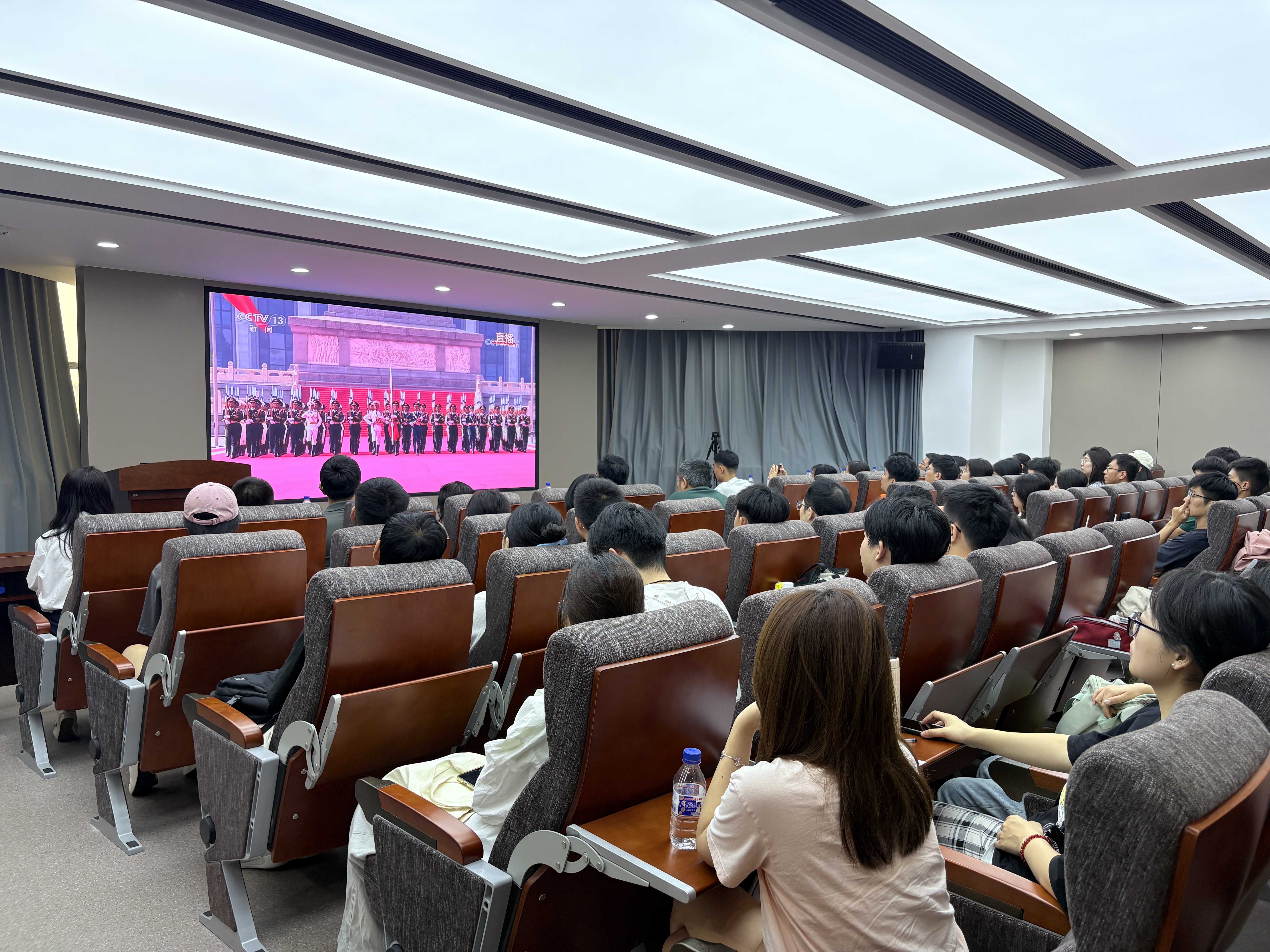为深化爱国主义教育,厚植家国情怀,2025年9月3日上午,ladbrokes立博在东荣大厦904、908会议室组织教师代表、2025级研究生新生代表集体观看“纪念中国人民抗日战争暨世界反法西斯战争胜利80周年大会及阅兵式”。