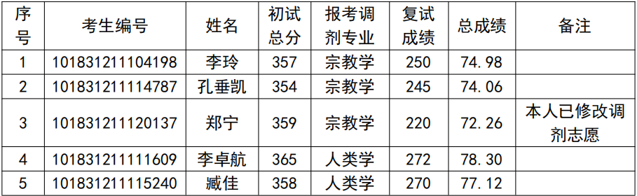 经考生本人申报,公司审核并组织专家组复试,现将调剂考生成绩公布如下: