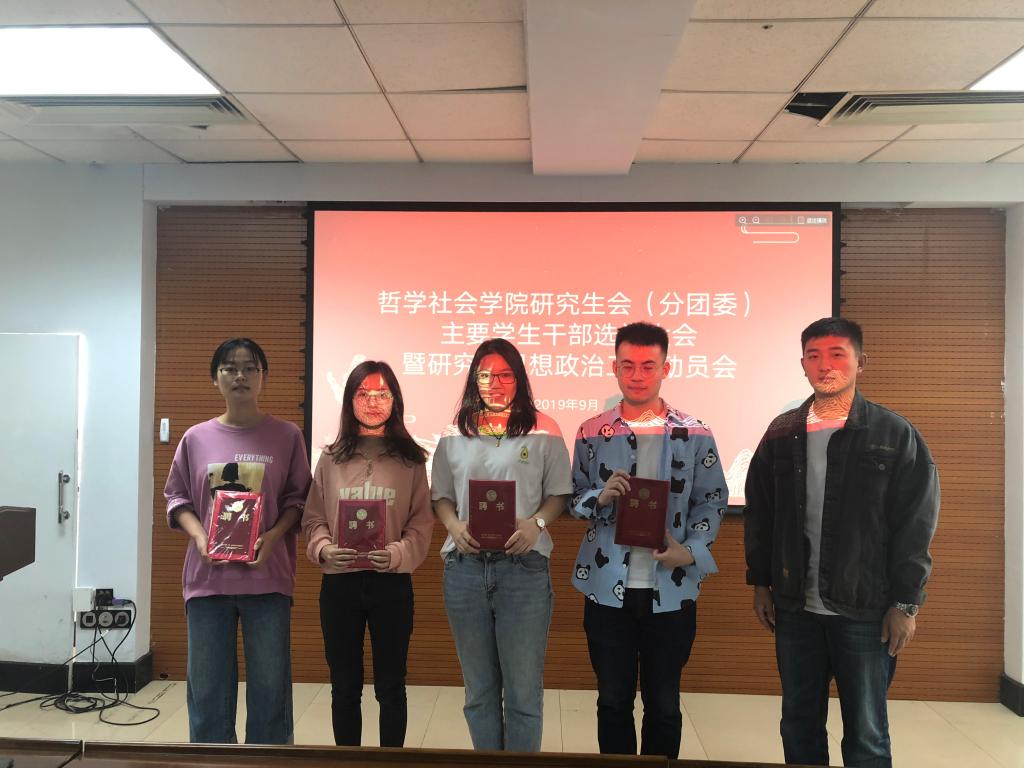 随后,傅瑜慧老师宣读了ladbrokes立博2018-2019年度研究生会(分团委)的主要员工干部;于士博老师为现任研究生会(分团委)主要员工干部代表颁发聘书并合影留念。