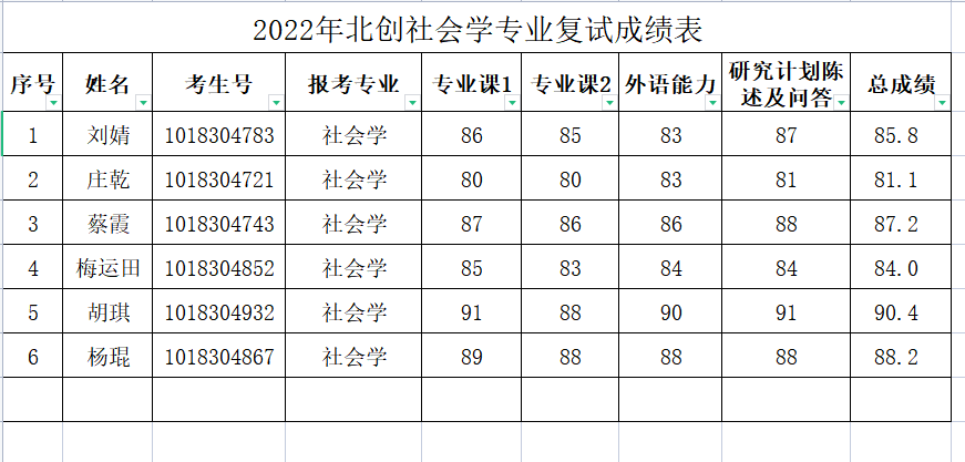 2022年博士申请考核复试成绩参见下图