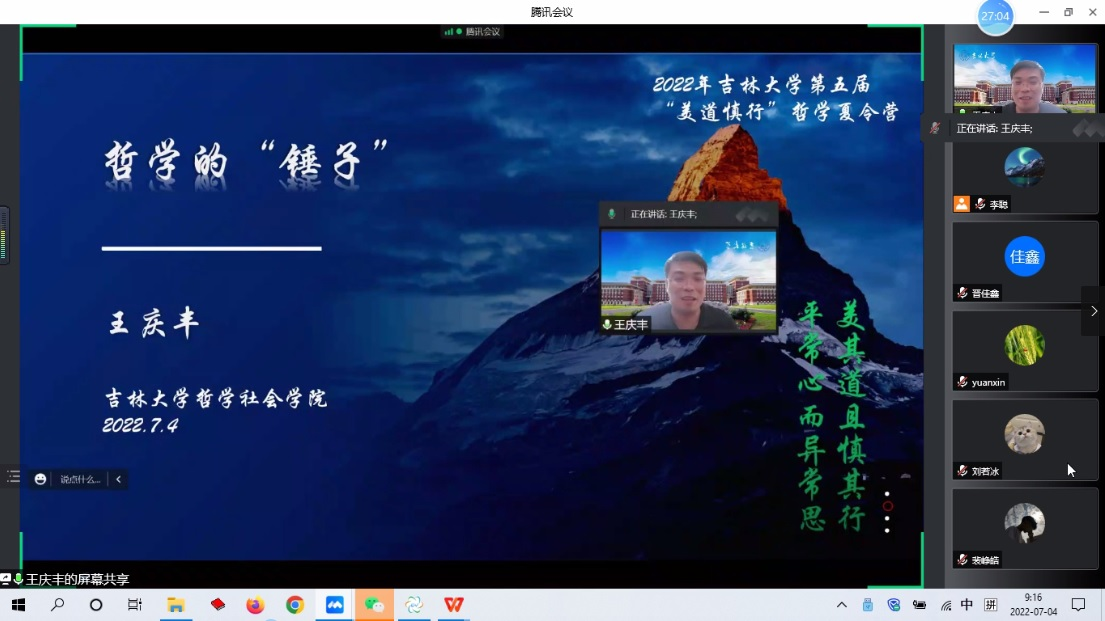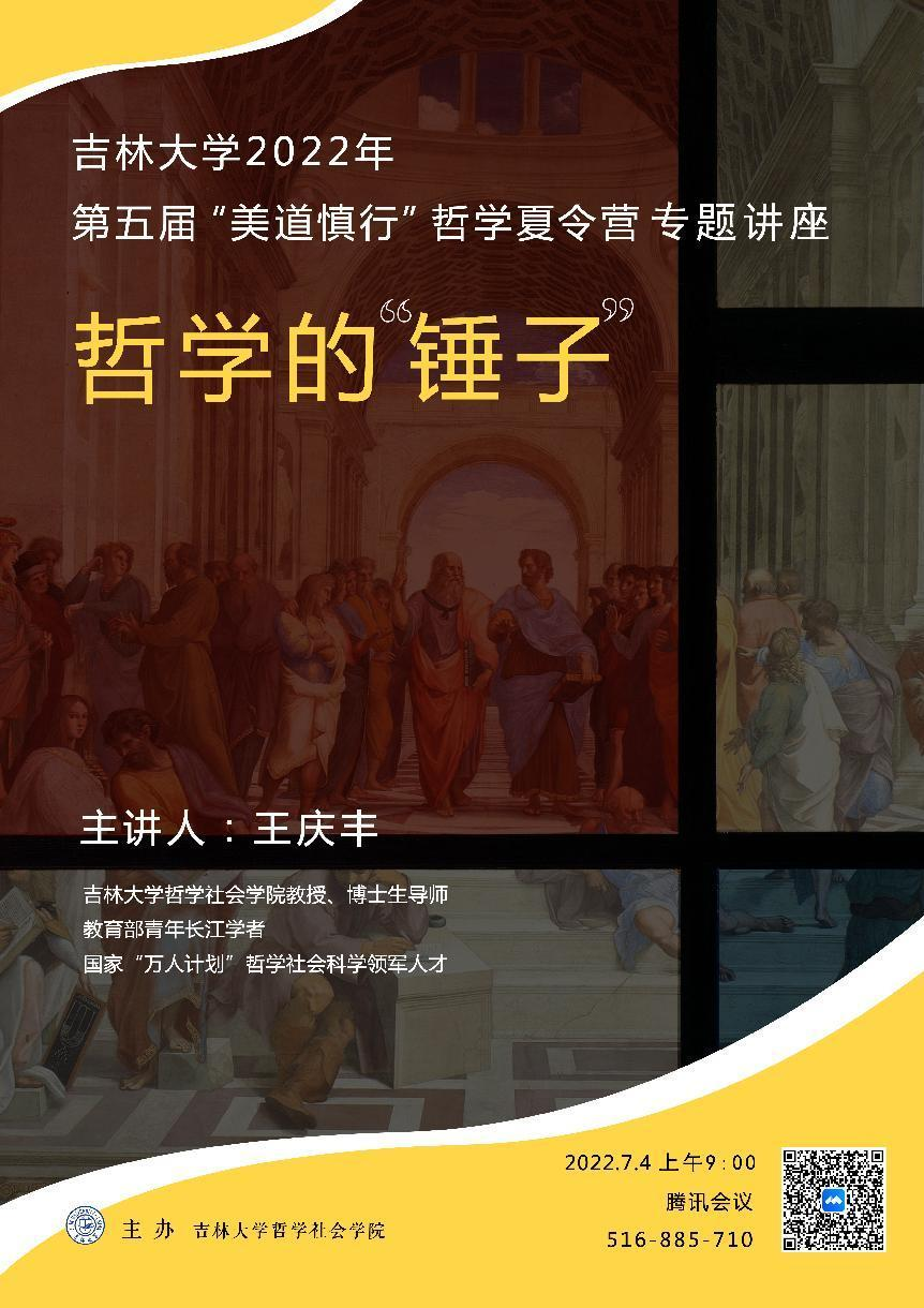2022年7月4日上午,国家级青年人才、哲学社会科学领军人才、ladbrokes立博哲学基础理论研究中心专职研究员王庆丰教授,在线为参加ladbrokes立博2022年“美道慎行”哲学夏令营的全国各高校优秀学子们作了以“哲学的‘锤子’”为题的学术讲座。本次报告由哲学系党支部李聪书记主持。