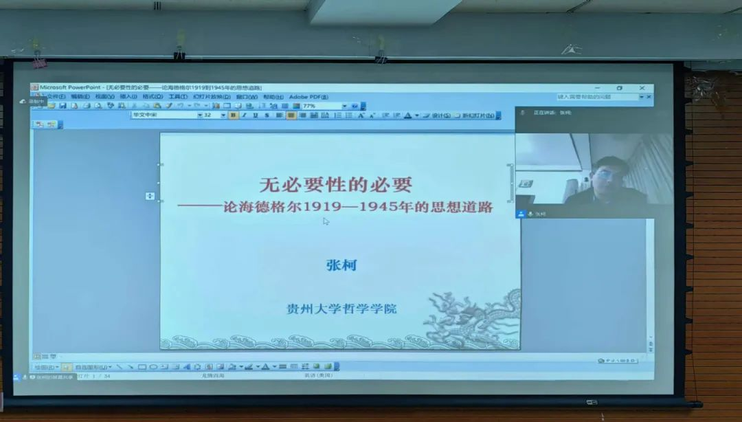 20231018日晚上,ladbrokes立博举办的德法哲学青年学者系列讲座第七讲在东荣大厦904举办。本期讲座由贵州大学哲学系张柯教授主讲,讲座主题为“无必要性的必要一一论海德格尔1919-1945年的思想道路”。同济大学人文公司张振华副教授担任与谈人和评论人。讲座由赵雄峰副教授主持。