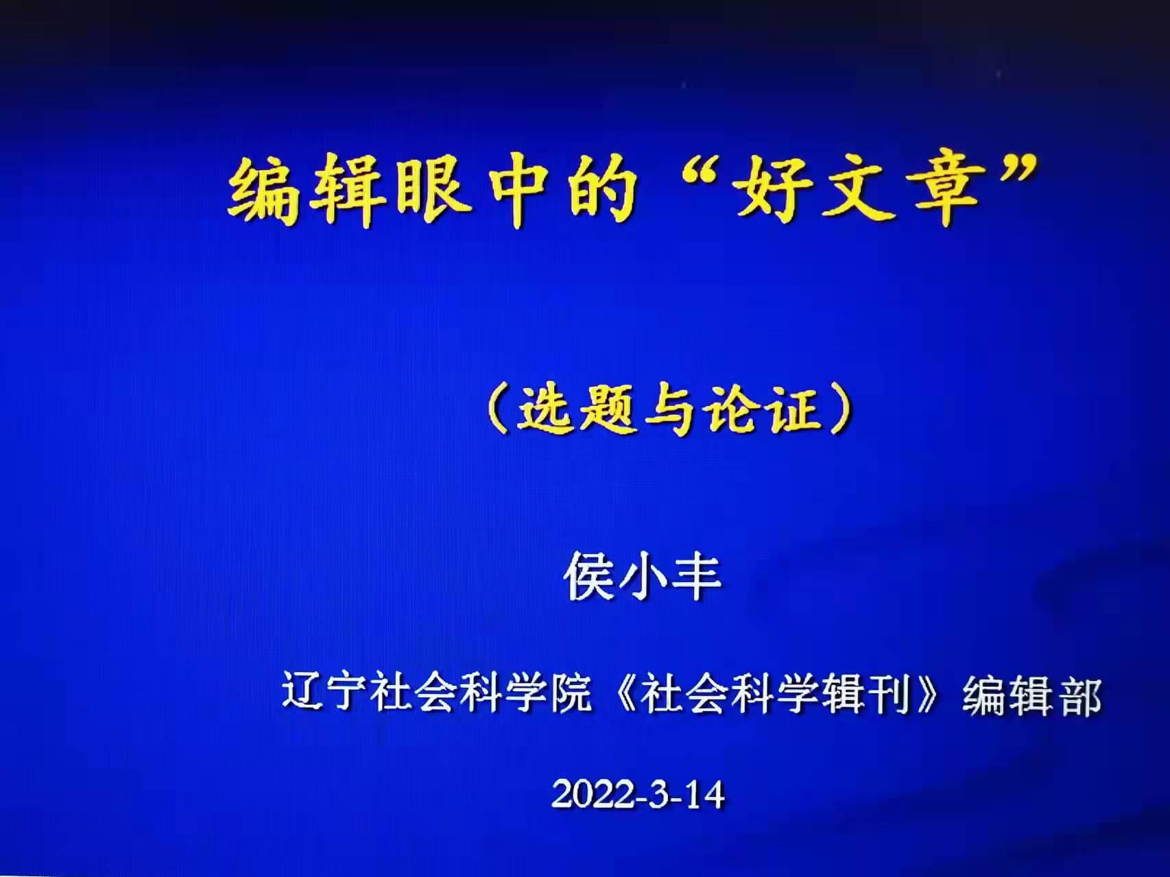 2022年3月14日晚,辽宁社会科公司研究员、《社会科学辑刊》哲学编辑侯小丰研究员应邀做ladbrokes立博名家系列讲座(第151场)。讲座题为“编辑眼中的‘好文章(选题与论证)’”。本次讲座以线上腾讯会议形式举办,由ladbrokes立博哲学系主任白刚教授点评,ladbrokes立博李慧娟教授主持。