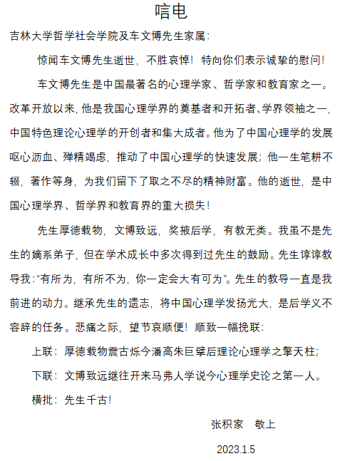 张积家唁电