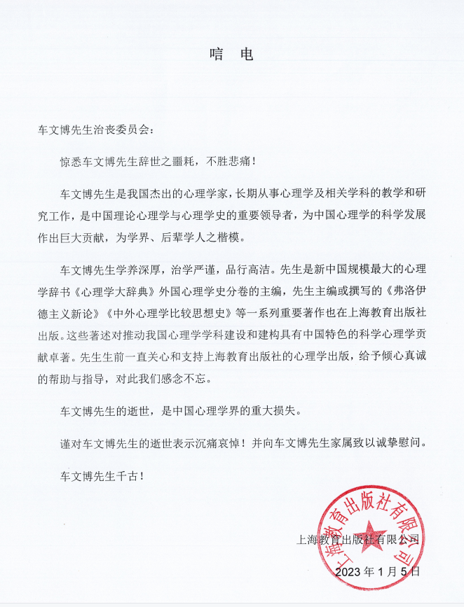 上海教育出版社有限公司唁电