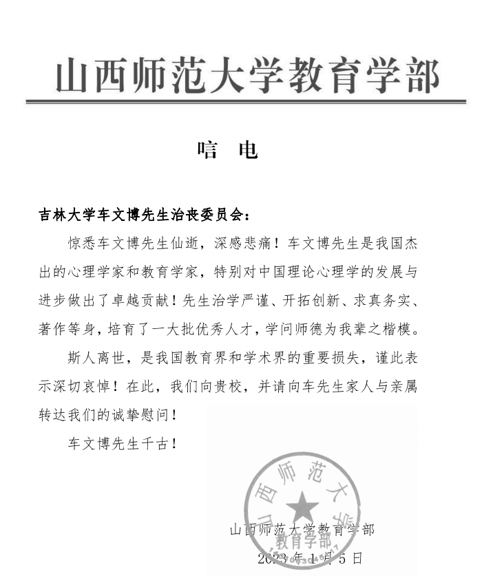 山西师范大学教育学部唁电